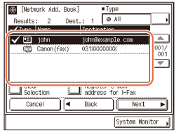 Kui saatmisfunktsioon (imageRUNNER 2525/2520 lisavarustus) on aktiveeritud ja seadme külge on kinnitatud lisavarustusse kuuluv Super G3 faksikaart AG1, siis saad tüübi ripploendi abil kuvatud aadresside vaadet sortida ja piirata.