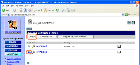 You can manage key pairs and digital certificates from the Remote UI by dividing them into the following types: