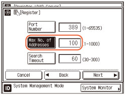 ] until [Register LDAP Server] appears → press [Register LDAP Server].