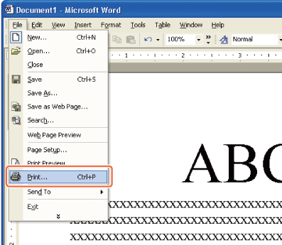 Sovelluksessa, jossa avaat tulostetavan asiakirjan, napsauta [Tiedosto]-valikkoa → valitse [Tulostus].