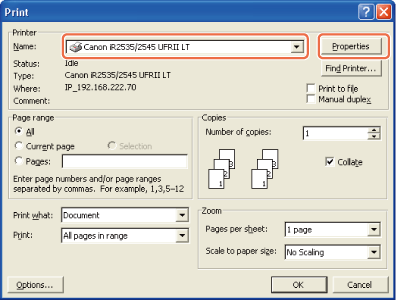 Valitse tulostimesi [Tulosta]-valintaikkunassa → napsauta [Ominaisuudet]*.
