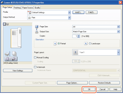 Määritä itsellesi sopivat tulostusasetukset tulostinasetusten kullakin välilehdellä → napsauta [OK].