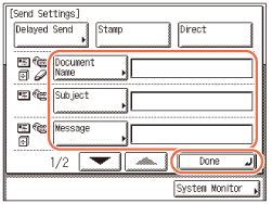 Asettaa lähetettävälle asiakirjalle nimen. Voit syöttää enintään 24 merkkiä asiakirjan nimeen.
