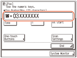 Syötä faksinumero (enintään 120 merkkiä) käyttämällä numeropainikkeita