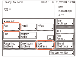 Paina [Uusi osoite] → valitse [Sähköposti], [I-faksi], [Tiedosto] tai [Faksi].