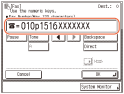 Jos tarpeen, syötä tauko faksinumeron perään painamalla [Tauko].