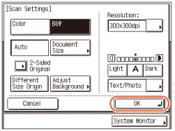 Jos lähetät asiakirjoja I-faksilla, voit valita tarkkuudeksi [200 × 100 dpi], [200 × 200 dpi], [200 × 400 dpi], [300 × 300 dpi], [400 × 400 dpi] tai [600 × 600 dpi].