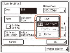 Paina [Tekstin korostus] tai [Kuvan korostus] säätääksesi tekstin ja kuvien korostuksen tasoa → paina [OK].
