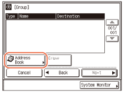 Jos haluat tallentaa ryhmäosoitteen, vastaanottajat on tallennettava edeltäkäsin Osoitekirjaan, kuten sähköpostiosoitteet ja tiedostopalvelinosoitteet.