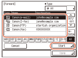 Valitse välitysvastaanottaja Osoitekirjasta → paina [Aloita].
