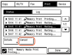 Valitse työ, jonka haluat peruuttaa → paina [Peruuta].