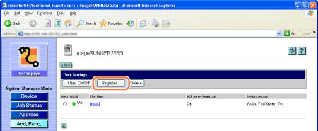 Select the button for the user you want to enable/disable under <Select> in the user list → click [User On/Off].