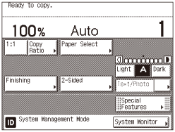 Press [User ID] → enter the User ID of the user registered as the System Manager → press [OK].