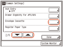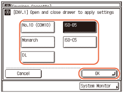 Εάν έχετε καθορίσει εκ των προτέρων τιμές για τις διαστάσεις ειδικού μεγέθους χαρτιού στην οριζόντια και την κατακόρυφη διεύθυνση, μπορείτε να πατήσετε το πλήκτρο [Μέγεθος 1] ή [Μέγεθος 2] για να καθορίσετε το μέγεθος του χαρτιού. (Αποθήκευση Μη-Στάνταρ Μεγεθών Χαρτιού)