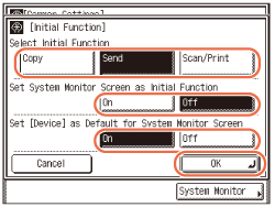 Πατήστε αυτό το πλήκτρο για να καθορίσετε την αρχική οθόνη της επιλεγμένης λειτουργίας (Αντιγραφή, Αποστολή, ή Σάρωση/Εκτύπωση) ως προεπιλεγμένη αρχική οθόνη.