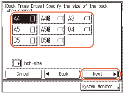 Επιλέξτε το μέγεθος του δεμένου πρωτοτύπου όταν είναι ανοικτό → πατήστε [Επόμενο].