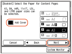 Επιλέξτε την πηγή τροφοδοσίας χαρτιού που θα χρησιμοποιηθεί για τα εξώφυλλα → πατήστε [OK] → [Τέλος].
