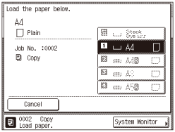Εάν τελειώσει το χαρτί κατά τη διάρκεια της εκτύπωσης, εμφανίζεται παραπάνω οθόνη. Οι υπόλοιπες εκτυπώσεις θα ολοκληρωθούν αυτόματα μόλις τοποθετήσετε το σωστό χαρτί.