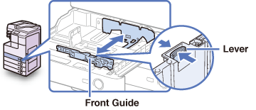 Ρυθμίστε σωστά τους οδηγούς. Εάν δεν το κάνετε, μπορεί να προκληθεί εμπλοκή του χαρτιού ή λερωμένες εκτυπώσεις, ή μπορεί να λερωθεί το εσωτερικό της συσκευής.