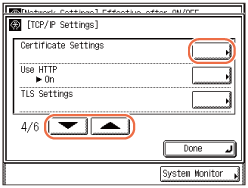 Press [TCP/IP Settings] → press [] or [] until [Certificate Settings] appears → press [Certificate Settings].