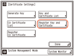 If you have installed a key pair (or a private key and certificate) in the machine from a web browser (Remote UI), register the key pair as described below.