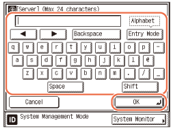 Press [User] → enter the user name according to the type of LDAP server you are using → press [OK].