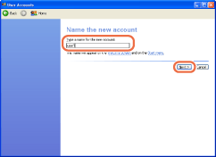 Click [Create a new account] → type a user name in [Type a name for the new account], and then click [Next].