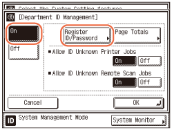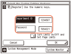 The machine does not accept print jobs that do not correspond with a registered Department ID, and you must enter a Department ID and password to operate the machine.