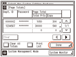 ] or [ ] to display the desired Department ID → press [ ] or [ ] to display and view the desired page totals.![]() |