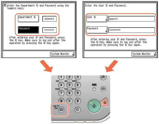 Ievadiet savu departamenta ID un paroli, ja logā tiek rādīts atbilstošs uzaicinājums → nospiediet