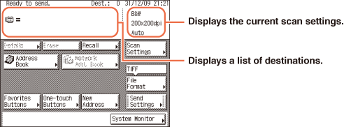 → Sūtīšanas pamatpaņēmieniNospiediet, lai norādītu sūtīšanas iestatījumus. Var norādīt dažādus iestatījumus, piemēram, iestatīt dokumenta nosūtīšanas laiku un ievadīt e-pasta ziņojuma vai i-faksa tēmu. |