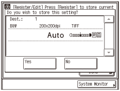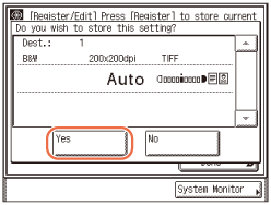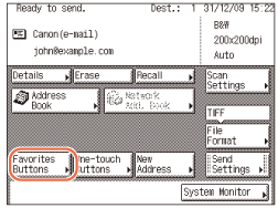 (SŪTĪT) → norādiet skenēšanas iestatījumus, sūtīšanas iestatījumus un adresātus, ko vēlaties reģistrēt izlases pogai./L04084.gif)