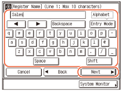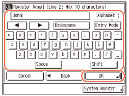 Ja iestatījumam Valodu pārslēgs ir norādīta vērtība “Iesl.”, dažas rakstzīmes ir aizliegtas, un tās nevar ievadīt. Lai varētu ievadīt visas rakstzīmes, norādiet iestatījumam “Valodu pārslēgs” vērtību “Izsl.”. (Iekārtas pamatiestatījumu konfigurēšana)