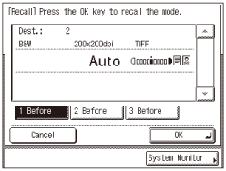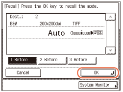 Ja iestatījumi sadaļā <Sūtot failu uz adrešu grāmatā reģistrētu adresi> ir konfigurēti tā, lai tiktu atvērts autentifikācijas ekrāns, un jūs nospiežat taustiņu