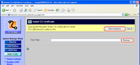 Click [Browse] → select the CA certificate file to install → click [Start Installation].