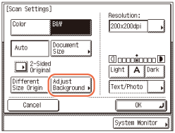 Kai skenuojate spalvotus originalus, šis režimas įgalina sureguliuoti fono spalvos tankį. Galite atskirai sureguliuoti raudoną, žalią ir mėlyną spalvą.