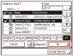 ![]() Jei pasirinktas adresatas yra grupės adresas, du kartus paspauskite [Atlikta].
