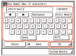 (Pradėti), kad būtų išsiųstas el. paštas arba I-fakso dokumentai, pasirodo tinklo slaptažodžio įvedimo ekranas. (Customizing Settings) Nurodykite vartotojo vardą ir slaptažodį → paspauskite [Gerai].