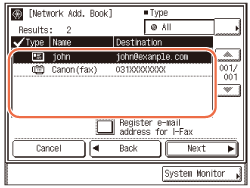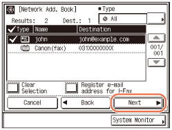 Setting up the Machine for Your Network Environment) Jei ekrane nerodo reikiamo adresato, tuomet padidinkite maksimalų ieškomų adresų skaičių arba pakeiskite paieškos kriterijus.