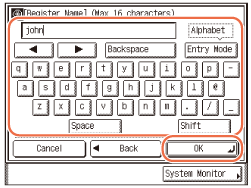 Naudodamiesi ekrano klaviatūra įregistruokite vardą (iki 16 ženklų) → paspauskite [Gerai].