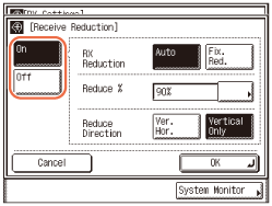 Jei paspausite [Išjungt.] mygtuką, priimtas dokumentas nebus automatiškai sumažintas, kad tilptų pasirinkto formato lape. Jei priimtas dokumentas netelpa spausdinimo plote, atvaizdas padalinamas į lygias dalis ir išspausdinamas ant atskirų popieriaus lapų.
