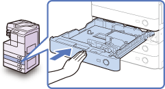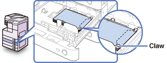Kai įdėsite vokų tiektuvą į popieriaus stalčių, nestumkite jėga popieriaus stalčiaus priekinio ir šoninio orientyrų neteisinga kryptimi. Jei taip darysite, galite pažeisti popieriaus stalčių.