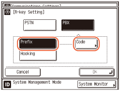 (Additional Functions) → [System Settings] → [Communications Settings] → [Fax Settings] → [R-key Settings].