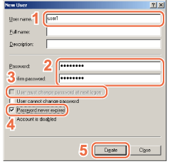 ![]() 1. In the [New User] dialog box, enter the user name in [User name].