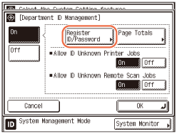 (Additional Functions) → [System Settings] → [Department ID Management].
