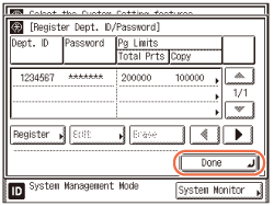 ] to display the Department ID whose password you want to change → select the Department ID → press [Edit].
