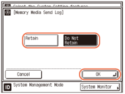 When [Memory Media Send Log] is set to [Do Not Retain], the TX Report or Error TX Report for send jobs to USB memory media is not printed, and such jobs are not recorded on the Activity Report.