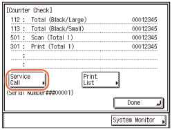 Norint per jautrų displėjų išsiųsti serviso iškvietimą, reikia iš anksto nustatyti aparatą. Smulkesnės informacijos kreipkitės į vietos įgaliotąjį „Canon“ tiekėją.