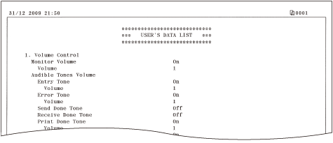 Bieżące ustawienia Funkcji dodatkowych mogą być wydrukowane w formie listy. (Drukowanie listy danych o użytkowniku)