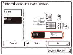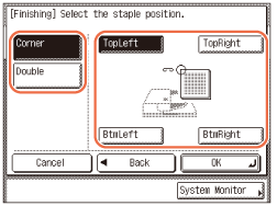 ![]() Jeżeli wybierzesz [W narożu], pojawi się powyższy ekran. Wybierz pozycję zszywania.